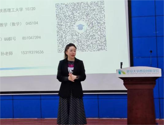 徐小玲作总结发言。她表示,本次讲座不仅丰富了同学们的学术视野,帮助同学们更好地理解和掌握数学概念,还为大家提供了研究思路和方法。她鼓励同学们要勇敢地追求自己的梦想,不要畏惧困难和挫折,只有敢于挑战自己,才能不断进步和成长。她希望大家在这次讲座中能够收获满满的知识和信心,今后多与陕西理工大学专家教授交流,多向老师请教,努力提升自身能力,为未来的考研之路做好充分的准备。